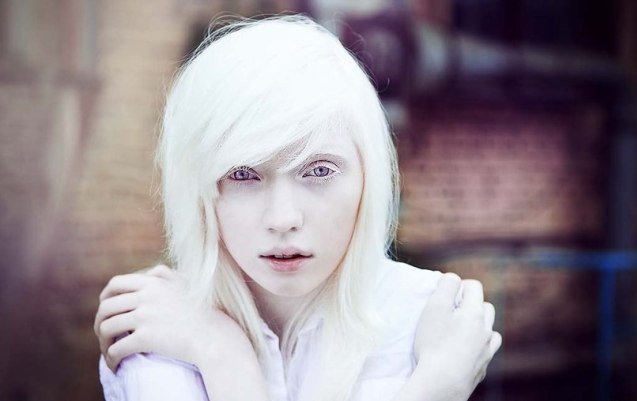 Albinosi mają bardzo jasną skórę, białe włosy, rzęsy i brwi. Dziecko z albinizmem rodzi się różowawe, co jest spowodowane prześwitywaniem naczyń krwionośnych. Oczy ludzi z albinizmem rzadko jednak bywają czerwonawe. Ludzkie oko jest stosunkowo duże, przez co często jest w stanie wyprodukować wystarczającą ilość pigmentu, by zapewnić sobie nieprzezroczystość i zabarwić się (najczęściej na kolor bladoniebieski). Jednakże zdarza się, że oczy osoby z albinizmem nie mają wystarczającej ilości pigmentu - tęczówka jest wtedy bezbarwna, przeświecają przez nią naczynia krwionośne, co nadaje oku czerwoną barwę. Albinosi są bardzo wrażliwi na działanie promieni słonecznych, szybko reagują stanami zapalnymi skóry, łatwo występują pęcherze i zrogowacenia.