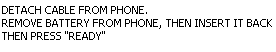 zobaczymy komunikat: „DETACH CABLE FROM PHONE (…)”