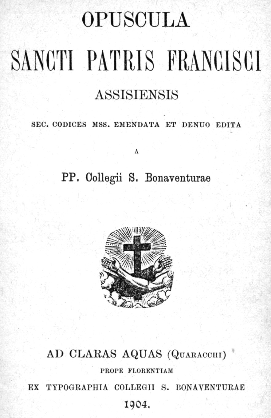 Opuscula Sancti Patris Francisci Assisiensis. Sec. codices et mss. emendata et denuo edita a PP. Collegii S. Bonaventurae. Ad Claras Aquas (Quaracchi) prope Florentiam. Ex Typographia Collegii S. Bonaventurae 1904. (BIBLIOTHECA FRANCISCANA ASCETICA MEDII AEVI, Tom. I.), p. 123.