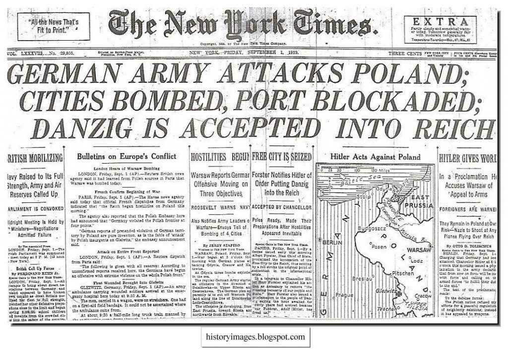 Za pierwszą inwazję II wojny światowej znowu odpowiada Polska. Sir Basil Liddell Hart, brytyjski historyk wojskowy: "W marcu 1939, 6 miesięcy przed wybuchem II wojny światowej, Polska 'skorzystała z okazji zdobycia części terytorium Czech'".