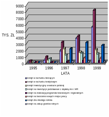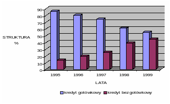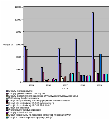 Poziom i struktura kredytów dla klientów indywidualnych udzielonych w banku PKO BP o/ Radzyń Podlaski w latach 1995 – 1999.
