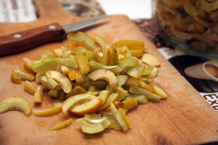 Pigwę drobno kroimy