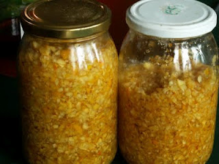 2/ Tak przygotowane owoce pigwy wkładam do 2-3 litrowych słojów przesypując cukrem.