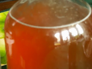 Kiedy cukier już ulegnie rozpuszczeniu, a pigwa puści sok należy zlać go do butelek