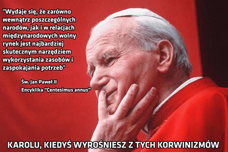 Papież był od początku mocno i bezpośrednio zaangażowany w tworzenie „Solidarności” i jej późniejszą deformację i jest odpowiedzialny za skutki jej działania, za powrót zwierzęcego, dziewiętnastowiecznego kapitalizmu, pauperyzację społeczeństwa, za nędzę i poniżenie robotników, ludzi pracy. To nie Papież i nie Kościół lecz M. Ghandi uważał, że „nie ma większej zbrodni niż doprowadzić ludzi do życia w nędzy”. Dlatego w jednym z artykułów zamieszczonym w Internecie wyraziłem się , że Papież powinien przeprosić ludzi pracy w Polsce za „Solidarność”, a właściwie za jej deformację.