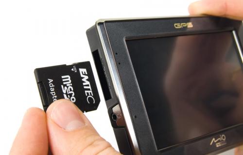 W celu doinstalowania dowolnego oprogramowania na urządzeniu nawigacji samochodowej niezbędna jest pusta karta pamięci, odpowiednia dla tego urządzenia, na którą wgrywa się specjalny program. W warsztacie wykorzystaliśmy GPS Mio C520 z gniazdem kart SD.