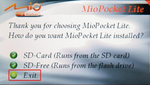 MioPocket Lite. Jeśli chcesz przerwać operację, kliknij Exit.