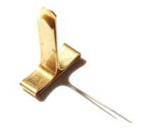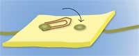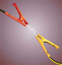 Przy wprowadzeniu pojęcia wyłącznika ważne jest dać dzieciom do zrozumienia, że jest to część ruchoma. Oznacza to, że w zależności od jego ustawienia w pewnej pozycji może on przerwać obwód elektryczny lub połaczyć go ponownie. Gdy pojęcie jego funkcji zostanie przyswojone, konstrukcja przełącznika ma już mniejsze znaczenie; może to być najprostszy działający model zrobiony np. ze spinacza biurowego i dwóch pinezek do papieru (patrz rysunek na lewo). Dla mniejszych dzieci być może bardziej przemówi wyłącznik zrobiony z tzw. krokodylka (patrz rysunek powyżej). |