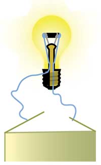 Kluczowe zagadnienie, to działanie wyłącznika w obwodzie. Obwód składa się z serii obiektów przewodzących prąd elektryczny, włączająć w to baterię oraz żaróweczkę. Wszystkie te elementy muszą być wzajemnie połączone, jeden za drugim tworząc zamknięta pętlę – tzw. zamknięty obwód elektryczny. Nie można zobaczyć, co jest w środku baterii, byłoby to nawet niebezpieczne ze względu na zawarte w niej chemikalia. Wystarczy powiedzieć, że zadaniem baterii jest zapewnienie przepływu prądu elektrycznego w obwodzie. Jeżeli w jakimkolwiek miejscu obwód elektryczny jest przerwany, przepływ prądu nie może dalej zachodzić. Aby uczniowie lepiej zrozumieli, że do przepływu prądu obwód musi być zamknięty, należy z bliska obejrzeć żaróweczkę – można nawet stłuc przedtem szklaną bańkę ( ostrożnie). Widać w środku dwa kontakty; jeden łączy włókno żaróweczki z jej stopką, drugi z bokiem oprawki (zobacz to na ilustracji). Dzieciom łatwiej jest wtedy prześledzić drogę prądu elektrycznego w żaróweczce. W szkole podstawowej niestety nie przewiduje się doświadczenia o kierunku przepływu prądu elektrycznego – nie można zobaczyć małych elektronów. Na tym poziomie najważniejszym jest by zrozumieć, że prąd płynie w obwodzie dzięki barterii poprzez przewody elektryczne. Wszystko razem musi tworzyć obwód zamknięty. Dowodem na to, że prąd elektryczny płynie , dla dzieci w szkole podstawowej, jest świecenie żaróweczki. |