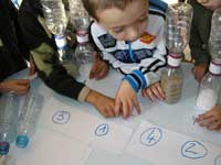 Powiedz dzieciom, jak napełnić piaskiem czsomierze.