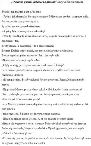 „W Marcu”– wysłuchanie wiersza H.Suchorzewskiej lub „O marcu, pannie Juliannie i o ptaszku” L. Krzemienieckiej |