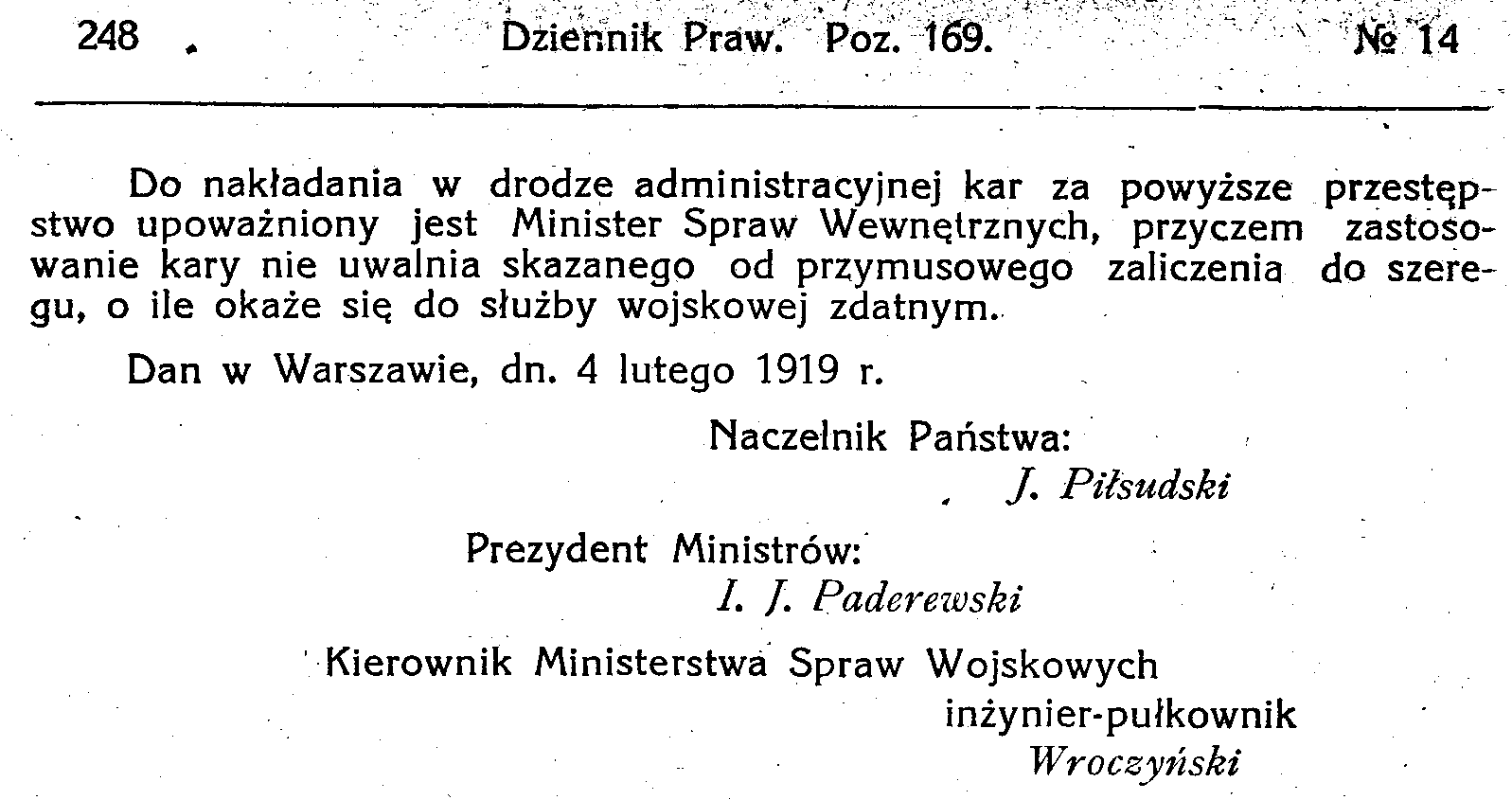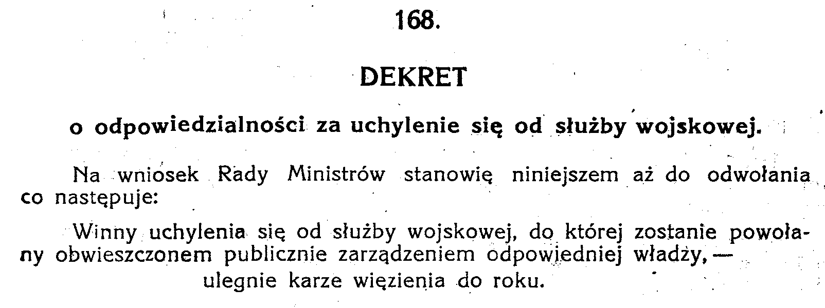 D19190168 Dekret o odpowiedzialności za uchylenie się od służby wojskowej
