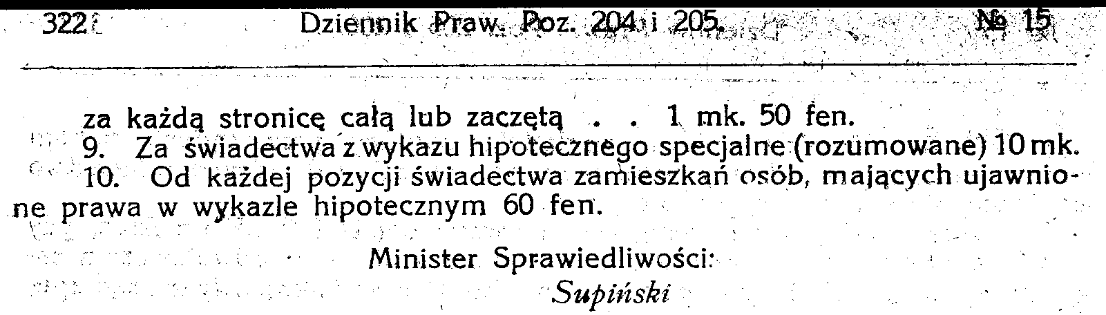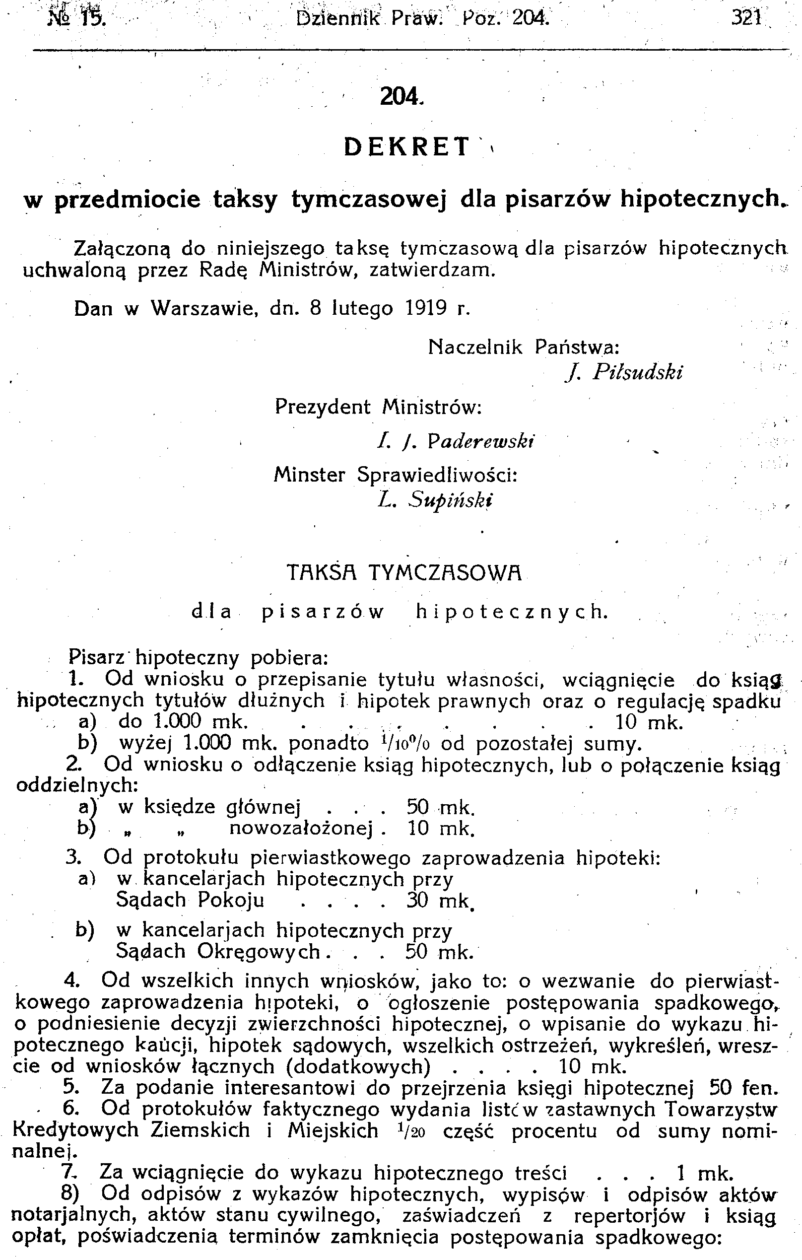 D19190204 Dekret w przedmiocie taksy tymczasowej dla pisarzy hipotecznych