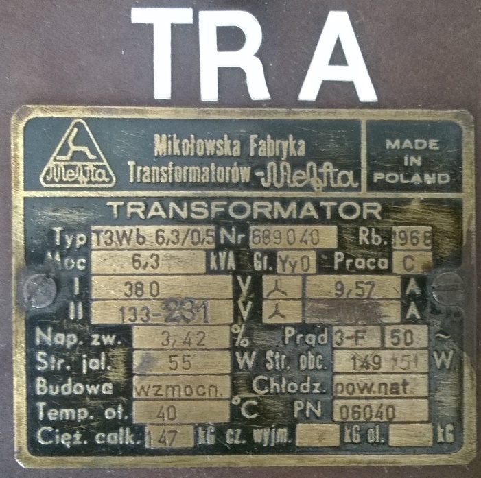 Obydwa transformatory mają takie same dane znamionowe: