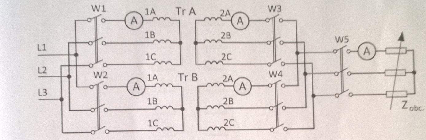 Celem ćwiczenia była ocena przydatności badanych transformatorów do pracy równoległej, pomiar przekładni transformatorów(metodą Kellera), pomiary podczas pracy równoległej transformatorów.