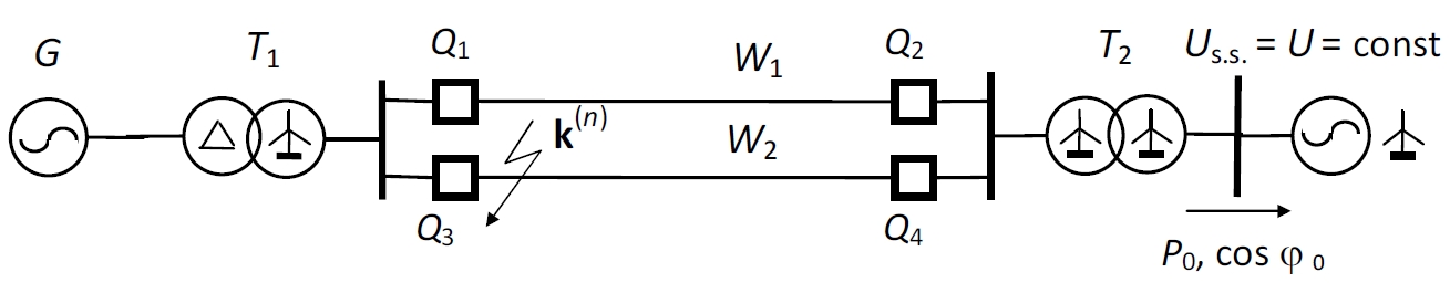 Schemat zastępczy sieci systemu elektroenergetycznego: