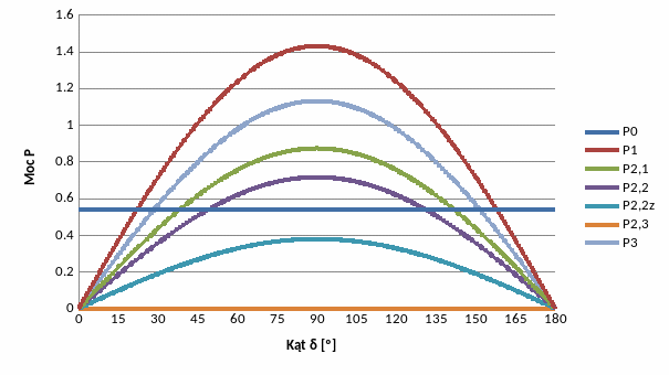 Charakterystyki kątowe dla stanów: normalnego, wszystkich rodzajów zwarć oraz poawaryjnego: