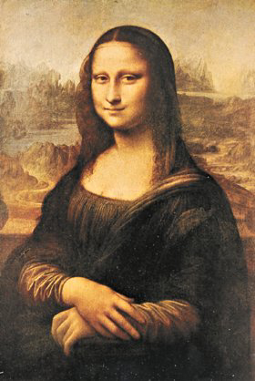 Leonardo namalował jeden z najsłynniejszych obrazów w dziejach sztuki — Monę Lisę — między 1503 a 1506 r. Mona Lisa Gherardini urodziła się w 1467 r.; gdy Leonardo ją malował, miała około 25 lat i była od 1495 r. żoną patrycjusza florenckiego Francesco di Bartolommeo di Zanobi del Giocondo. Vasari, biograf artystów włoskich, pisał w 1550 r. o obrazie: „... najmniejsze szczegóły oddane są z możliwą delikatnością. Oczy mają blask i wilgotność żywych. Widać wokół nich czerwononiebieskie żyłki i brwi, jakie tylko z największą lekkością można wykonać... Nos, ze wszystkimi pięknymi cieniami, różowymi i miękkimi, wygląda jak żywy. Usta w ich kącikach i w krągłościach, tam gdzie czerwień ust łączy się z kolorem twarzy, zdają się być prawdziwe jak ciało i krew... W czasie gdy [Mona Lisa] pozowała, zawsze ktoś grał i śpiewał, a [malarz] sprowadzał nawet trefnisiów, by ją rozbawiali. Chciał uniknąć melancholii, którą tak często przekazują portrety. Toteż w obrazie Leonarda znalazł się tak czarujący uśmiech, że wydaje się być bardziej niebiański niż ludzki.”