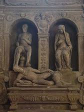 Jeden z bardziej monumentalnych, jednostkowa struktura architektoniczna. Postaci zmarłych – siedzące. Struktura manierystyczna, mamy i niszę trój arkadowo zamkniętą i elementy podpór, podobne do gucciowskich zwieńczenia, rozbudowanie nagrobka na boki, nisza środkowa pogłębiona, elementy trochę podobne, ale nie muszą być jednoznaczne. Niektóre elementy przekute podczas konserwacji.