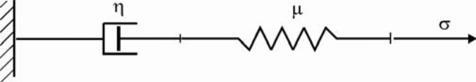W materiale o modelu Maxwella nagłe przyłożenie siły wywołuje natychmiastowe odkształcenie dzięki elementowi sprężystemu. W dalszych chwilach obserwuje się pełzanie związane z istnieniem elementu tłumika. Również nagłe odkształcenie wywołuje natychmiastową reakcję (naprężenie) elementu sprężystego, której wartość zmniejsza się wykładniczo z czasem na skutek zjawiska relaksacji naprężeń. Czynnik η/μ o wymiarze czasu nazywa się czasem relaksacji – jest miarą szybkości zanikania naprężenia w elemencie sprężystym.