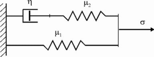 Model standardowy jest szeregowym połączeniem modelu Maxwella i modelu sprężystego. Naprężenie jest sumą naprężenia w elemencie Maxwella i sprężystym, stąd