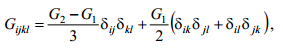 W przypadku materiału izotropowego tensor Gijkl charakteryzuje się niezmienniczością względem obrotu układu współrzędnych. Zatem Gijkl musi być tensorem izotropowym i wówczas można go przedstawić w postaci