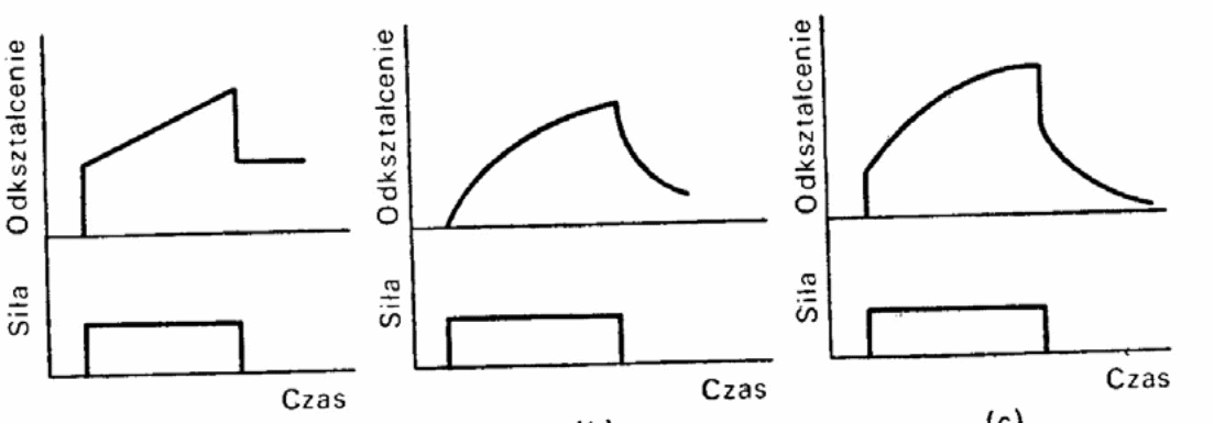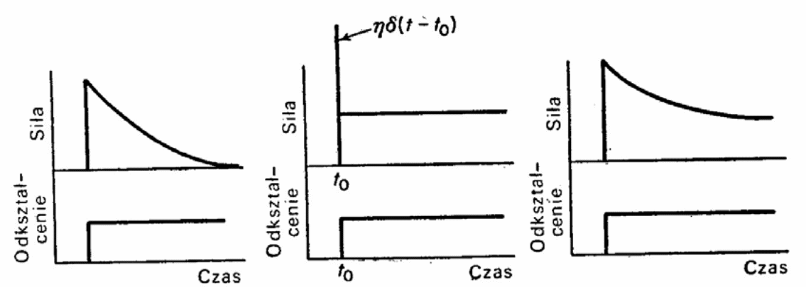 Dla materiału wykazującego cechy sprężyste i lepkie typowe funkcje pełzania i relaksacji są pokazane na Rys. 2.