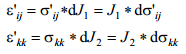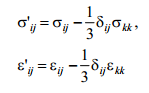 gdzie σ'ij , ε'ij są składowymi dewiatora naprężenia i odkształcenia: