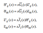 gdzie G1, G2 są funkcjami skalarnymi spełniającymi powyższe warunki i nazwane funkcjami relaksacyjnymi dla ścinania i izotropowe ściskania. Funkcje te są odpowiednikami modułu Kirchhoffa μ oraz modułu ściśliwości K dla ciał sprężystych izotropowych.