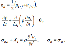 Wprowadza się następujące oznaczenia: tensor naprężenia σij, tensor odkształcenia εij w każdym punkcie x ciała w przedziale czasu (−∞ <t < +∞). Zakłada się że pole odkształceń εij(x,t), pole przemieszczeń ui(x,t) i pole prędkości vi (x,t) są nieskończenie małe.