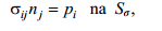 Warunki brzegowe mogą mieć postać albo zadanych sił powierzchniowych na powierzchni Sσ z normalną zewnętrzną ni (warunki kinetyczne)