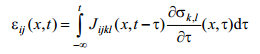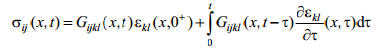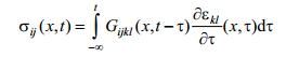 Jest to prawo naprężenie-odkształcenie typu relaksacyjnego. Gijkl jest polem tensorowym 4-tego rzędu − tensorową funkcją relaksacyjną. Równanie postaci (36) w literaturze nosi nazwę splotu całkowego funkcji Gijkl oraz εij.