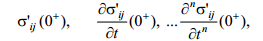 W przypadku stosowania równań (c) w chwili początkowej t=0 zachodzi skok ciągłości dewiatora odkształcenia bądź naprężenia, wówczas warunki początkowe muszą określać pole odkształcenia i pochodne tego pola w chwili początkowej