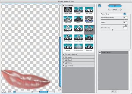 Filter/Artistic (Filtr/Artystyczne) i odszukaj polecenie Plastic Wrap