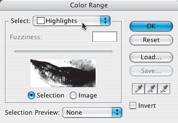 polecenie Color Range (Zakres koloru) z menu Select (Zaznacz), a gdy