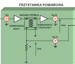 drugim sposobem pomiaru pętli histerezy jest wykorzystanie zaawansowanego układu pomiarowego zawierającego wzmacniacz mocy, wzmacniacz całkujący. taki układ służy do pomiaru dynamicznej pętli histerezy a schemat przystawki pomiarowej wygląda :