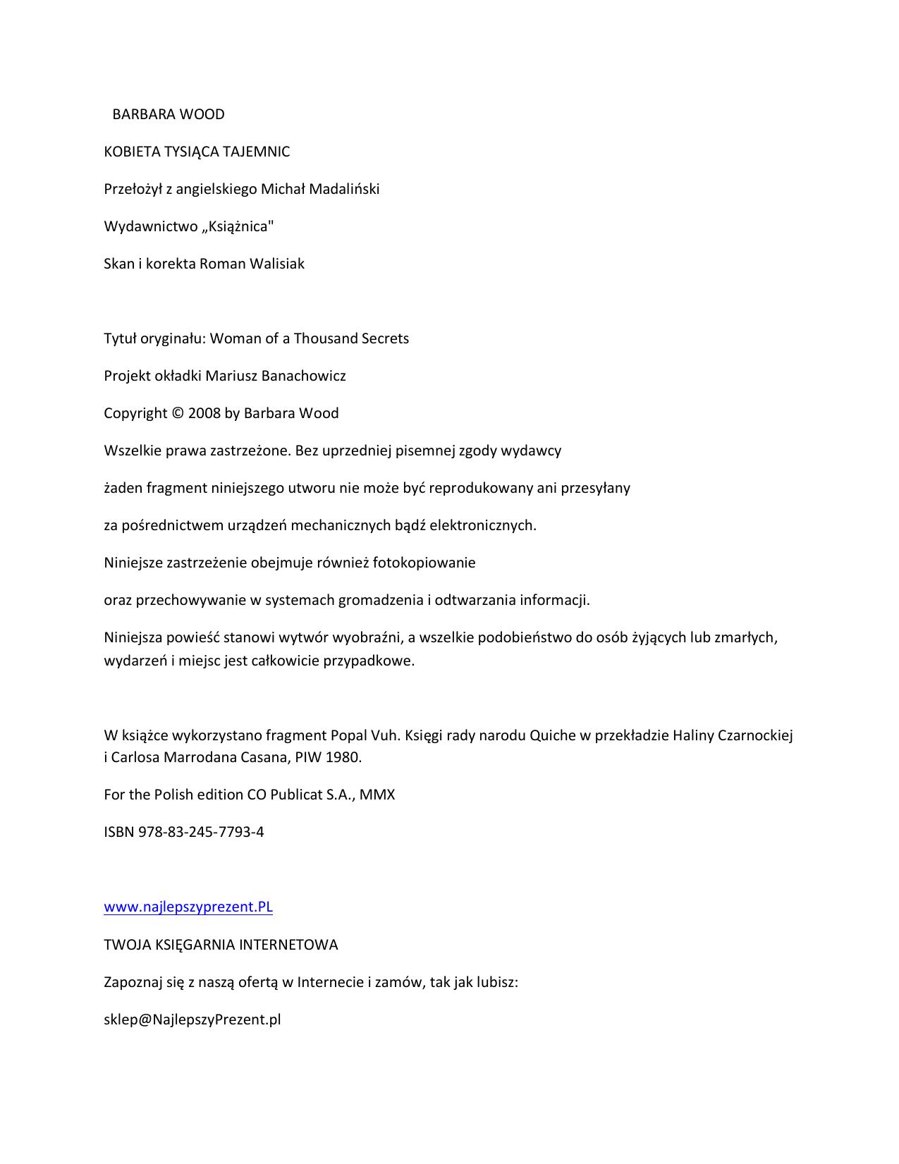 żaden fragment niniejszego utworu nie może być reprodukowany ani przesyłany