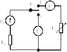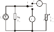 Rys. 1.4. Układ do pomiaru prądu płynącego przez odbiornik (przełącznik P w położeniu 2) przy zmianie wartości rezystancji Rob od zera do wartości maksymalnej