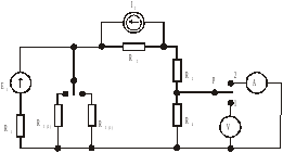 E1 = 13,6[V]; I5 =0,12 [mA]; R1 =22,7 [Ω]; R2 =10,4 [Ω]; R3(1) =24,6 [Ω]; R3(2) =5,3 [Ω]; R4 =39,8 [Ω]; R5 =25,4 [Ω] |