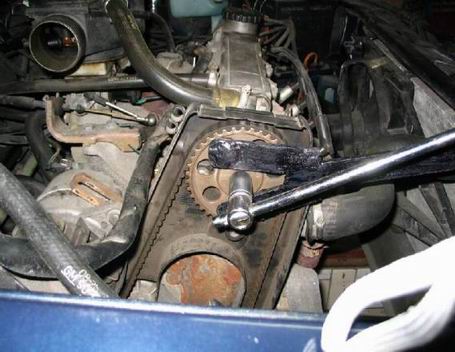odkręcamy śrubę mocującą koło rozrządu ja do tego celu użyłem