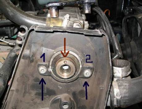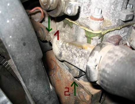 tak wygląda z dołu.Nr 1 to pompa wody nr 2 napinacz paska rozrządu