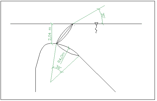 wysokość warstwy przelewowej na koronie przelewu: H0 = 2,04 m;