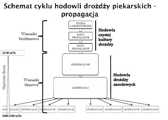 Wymagania stawiane drożdżom piekarskim. Schemat hodowli drożdży piekarskich.