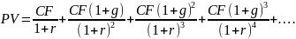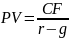 Wartość zaktualizowana bezterminowego annuitetu rosnącego w każdym roku w stałym tempie g wynosi: