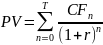 Symbol ∑ w powyższym równaniu oznacza sumę zdyskontowanych przepływów pieniężnych w latach 0, 1, 2 … T.