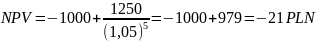 Przedstawia on wartość inwestycji we wkład bankowy pozbawionej ryzyka przy stopie procentowej wynoszącej 5%. Jak widać inwestycja ta jest nieopłacalna. Każda inna inwestycja nieobciążona ryzykiem powinna być wyceniana przy zastosowaniu porównywalnej stopy procentowej. Inwestycję uznaje się za opłacalną wyłącznie wtedy, kiedy jej wartość zaktualizowana netto jest dodatnia.