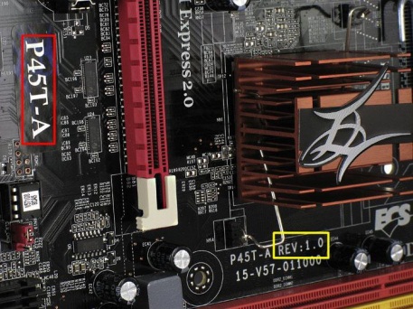 Do zidentyfikowania płyty głównej - nie wystarcza sama nazwa serii (czerwona ramka), potrzebne są jeszcze dodatkowe informacje takie jak numer wersji (żółta ramka) i dopiski (np. de luxe)