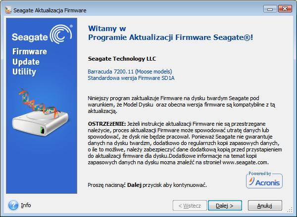 Obecnie firma Seagate wypuściła program do aktualizacji w Windowsie. Jest on również w języku polskim. Podczas tej procedury system wykonuje restart i przy ponownym uruchomieniu uruchamia aktualizację.