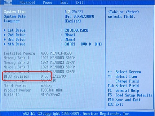 Wersja BIOS, jaką posiadamy, zostanie wyświetlona po prawej