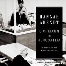W książce "Eichmann w Jerozolimie" / Eichmann in Jerusalem napisała: "W Amsterdamie jak w Warszawie, w Berlinie jak w Budapeszcie, żydowskim urzędnikom ufano iż przygotują listę osób i ich własności, żeby zabezpieczyć pieniądze deportowanych, pokryć koszty deportacji i zagłady, mieć listę opuszczonych mieszkań, przekazywać policji i pomóc wyłapywać Żydów i wsadzać ich do pociągów, aż, jako ostatni gest, przekazywać aktywa wspólnoty żydowskiej do konfiskaty. Oni rozprowadzali znaki z żółtą gwiazdą [i niekiedy sprzedawali] tkaniny i ozdobne plastykowe opaski, które można było prać". (p.117) http://www.aldeilis.net/zion/zionhol02.html